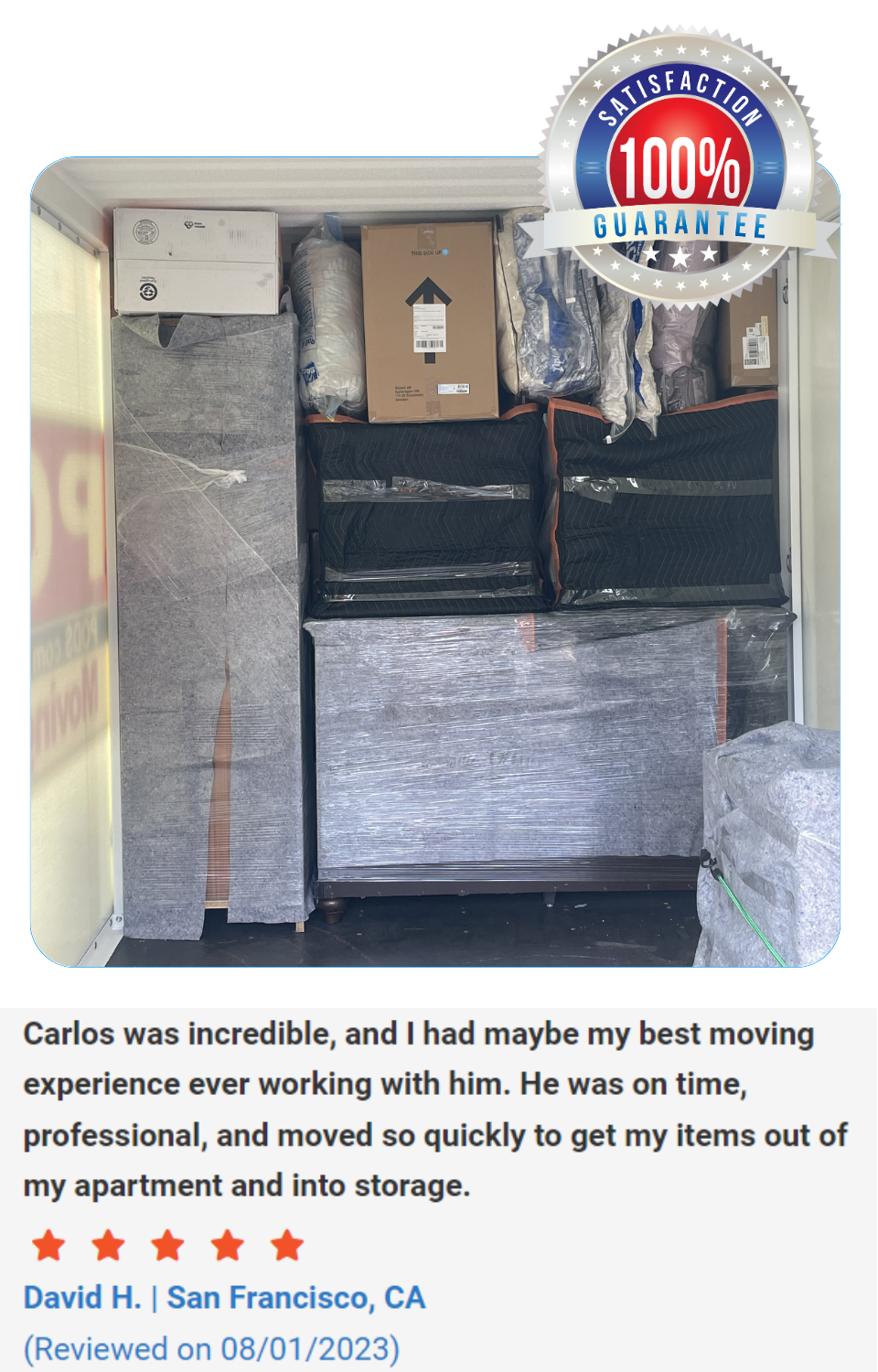 At this moment for labor only no, if you request truck yes (furniture only). and for indoors if you are particularly concerned about indoor damages i suggest booking additional time to have me blanket and stretch wrap your furniture properly.